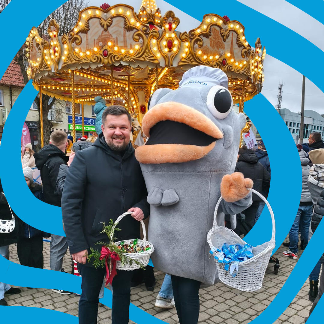 Nie zabrakło również firmowej maskotki – dobrze znanego Pana Łososia. Jego obecność wywoływała wiele uśmiechów, szczególnie wśród dzieci. Z okazji mikołajek rozdawał drobne upominki i chętnie pozował do pamiątkowych zdjęć, tworząc razem z uczestnikami jarmarku ciepłą, świąteczną atmosferę.
